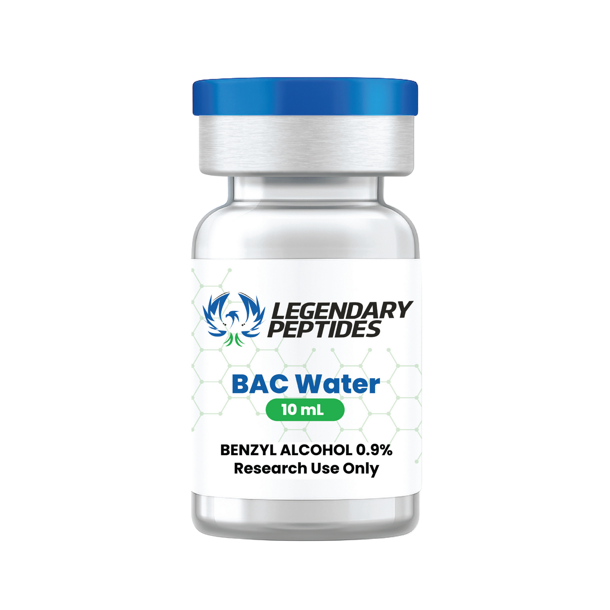 Bacteriostatic Water (BAC Water) is a sterile, non-pyrogenic solution composed of pharmaceutical-grade water and 0.9% benzyl alcohol, which serves as a preservative to inhibit bacterial growth during storage and repeated use. In a research setting, BAC Water is utilized as a diluent or solvent for reconstituting lyophilized peptides and other compounds, ensuring accurate preparation and consistency across experimental protocols.